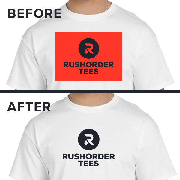 When uploading your own t-shirt design to our Design Studio, sometimes a box will appear behind your artwork. In some cases, it is completely different than the shirt color. Not to worry – This is an easy fix! After placing your order, our designers will remove that background and show you a finished design layout without that extra coloration.