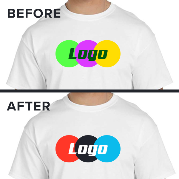 We recommend paying particular attention to the contrast between the shirt color and ink colors you select in order to make sure you will be satisfied with the final results. For example, if you think white ink looks great on a forest green t-shirt, go for it. Or if you think red ink looks great on a black t-shirt, no problem. Everyone has unique tastes, but if we feel that you have chosen an ink color that will not be visible on your shirts -- we'll have your back! Should this occur, we will notify you of our concerns by phone or email. If you would like our recommendations before placing your order.